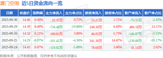 股市资讯官网_今日大盘行情分析+热门牛股推荐_股民必看的投资指南股票行情快报:厦门空港(600897)9月30日主力资金净买入2235万元