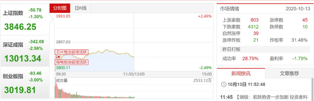 我早上八点多也给群里分享了下,也是提醒大家别在集合竞价阶段就割肉。因为不会重演4月7日走势,只不过,这时候股市在相对高位,本身有技术调整需求,现在有消息面大利空,确实会压制盘面,即便今天没有大跌普跌,也不代表盘面就会延续之前的涨势加速上行,这里进入盘整阶段是大概率,特别是深市和双创,后面还有三季报的考验,仍然要控制仓位,耐心等待技术修复和利空消化。