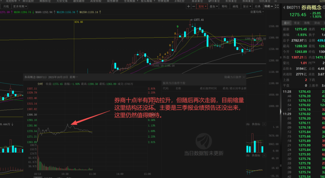 当然,领涨板块也在预期之中,比如稀土板块,镨钕和稀土磁材、有色钨、钼和黄金等,表现都还不错,这些在周五周六的文章都已经提及了,特别是稀土涨价的预期特别好,今天北方稀土高开5%,目前冲击了涨停。他们说票是挺好的,但是这个价格已经不太舒服了。按理说潜伏三季报应该提前几天。愿意冒险,今天高开可以参与,但不是很舒服。