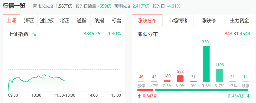 总体就盘面来说,指数跌幅确实没那么夸张,属于可以接受的调整。即便没有周末外部的利空,其实我也是偏向于调整的。不过今天是4500个票下跌,确实是比较难看了,只有800个票上涨,不过46个涨停,只有11个跌停,也算不上多严重。不存在千股跌停的情况,上午主力资金还是跑了530亿,上午缩量了660亿,估计全天是2.4万亿。这也说明目前这个位置抄底进场资金不多,估计就是量化活跃一点。所以当前的策略应该是半仓波段为主,持仓要确保三季报不会太差。返回搜狐,查看更多