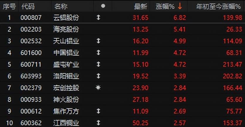 今天亚盘贵金属期货迎来反弹,截至发稿,现货黄金反弹近1%,现货白银反弹近4%。A股有色金属板块低开高走,云铝股份大涨近7%,天山铝业、中国铝业涨近5%。