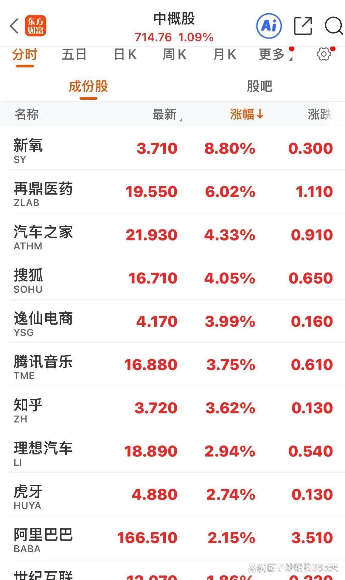 就在科技股内部剧烈分化的同时,中概股板块却展现出了难得的韧性。 纳斯达克中国金龙指数在盘中一度上涨近2%,尽管受美股尾盘跳水影响涨幅收窄,但最终仍收涨1.09%,显著跑赢了美股三大指数。 个股方面,新氧大涨8.80%,搜狐上涨4.05%,阿里巴巴上涨2.15%,理想汽车上涨2.94%,台积电上涨1.83%,构成一幅普涨画卷。